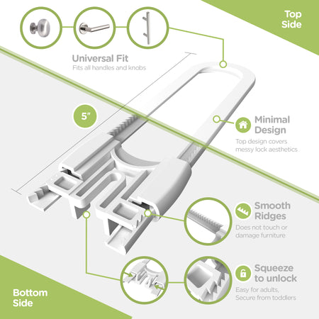 Adhesive baby proofing products can damage your furniture when removed, but our sliding locks simply locks the handles and can be easily removed without peeling off the paint or leaving marks on the furniture. The sleek and stylish design does not ruin the look of the furniture.