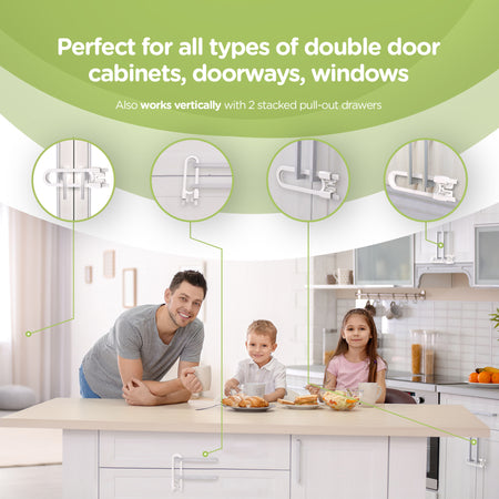 The locks work best on cabinet handles and knobs up to 4.75 inches apart. Just to inform you, we have a 5inches long and a 10inches long Sliding Cabinet Locks.
